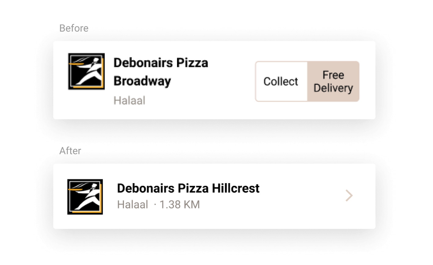 Every branch in a 10km radius was being shown, regardless of whether they could deliver to them. Each listing also had too much irrelevant information.